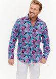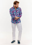 Soak up the sunny vibes with the Afterglow Linen Shirt, featuring a vibrant blend of blue and pink in a tropical palm print that instantly lifts your mood. Made from 100% breathable linen, this long-sleeve shirt keeps you cool and becomes softer with every wear. Easily match it with crisp White Memphis pants or sleek ink chinos for a stylish yet comfortable outfit. Whether you’re strolling along the beach or out on the town, this shirt brings a cheerful splash of colour and a relaxed fit that moves with you.