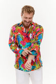 The Pigmentation Linen Shirt brings a burst of tropical fun to your wardrobe with its bold parrot print and vibrant colors. Crafted from 100% pure linen, this long sleeve button-up shirt keeps you cool and comfortable all day long, thanks to its breathable fabric that only gets softer with time. It’s the perfect choice for anyone wanting to channel those laid-back holiday vibes, whether you're strolling on the beach or enjoying a casual day out. Complete the look by pairing it with White Memphis men's pants to achieve a relaxed, effortlessly stylish outfit that’s sure to get noticed and spark compliments wherever your adventures take you.