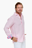 Fresh, tropical, and full of personality — Bloom men's pink linen shirt is the colour that turns every day into a holiday. Soft pink linen meets colourful trims, giving you the perfect balance of relaxed resort style and standout charm.