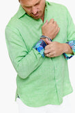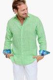 Crisp, clean, and beautifully refreshing — this Clover green men's linen shirt is your go-to for warm days and holiday breezes. The perfect green that’s bright enough to feel summery yet soft enough to wear anywhere.