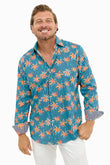 Dive into vibrant colour with the Isla Shirt Lagoon. Made from ultra-soft 100% Supima Cotton, this long sleeve shirt delivers incredible comfort with a distinctly tropical edge. The refreshing lagoon-blue base contrasts beautifully with coral and citrus palms, creating a shirt that brings the sunshine with you wherever you go.