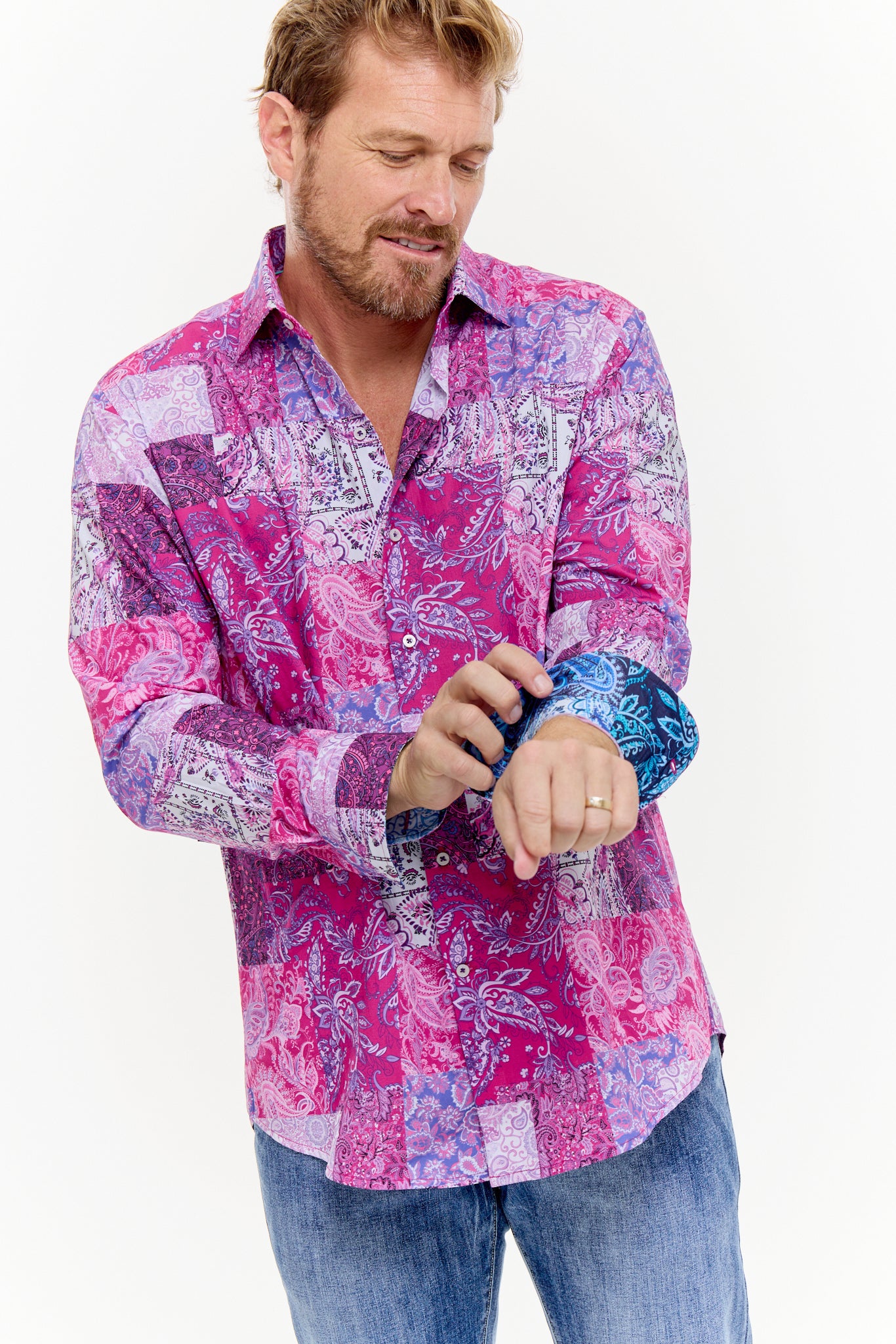 Transform your wardrobe with the exquisite TAPESTRY SHIRT ROSE by David Smith. Featuring intricate paisley designs from years past, this shirt showcases the perfect blend of artistry and craftsmanship. The soft pink rose tones add a touch of sophistication and charm to your ensemble, while the high-quality 100% Cotton Poplin fabric ensures both comfort and style. Whether you're dressing up for a special occasion or elevating your casual look, this versatile shirt is a must-have for any fashion-forward individual. Elevate your style game with this unique wardrobe essential from David Smith.
