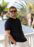 This black men's tee is made for everyday adventures. Crafted from David Smith’s special soft cotton jersey, woven in Portugal, it feels like a gentle breeze on your skin. Designed to fit comfortably and keep you cool, this t-shirt is your go-to for effortless style and endless wear. Get ready to fall in love with your new favourite black tee!