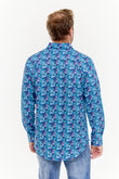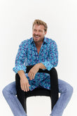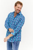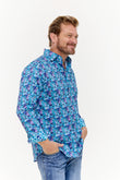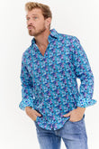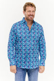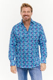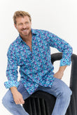 Expertly designed by Australian fashion icon David Smith, this Inked Shirt Indigo features unique aqua and blue splashes on a crisp navy blue background. Made from the finest Supima Cotton, this luxurious button-up shirt is perfect for adding a touch of flair to any outfit, whether you're dressing up for a special occasion or dressing down for a casual outing. With its long sleeves, this men's shirt is sure to make a statement wherever you go.