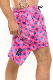 Float away wearing these tropical swim shorts. David Smith swim shorts with the added bonus of a pocket bag to keep your Bahamas pink and blue star swim shorts in or all your essentials when out for a swim. Keep a pair in your car for that ultimate spur-of-the-moment getaway or adventure. Quick-drying and soft to touch as well as being comfortable and lightweight. Quick-drying swim fabrication, elasticated waistband with drawstring, side pockets, velcro tab back pocket, and Internal mesh briefs. 5" (13 cm) inleg.