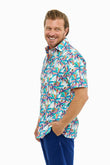 The Foam Palm Silcott Shirt captures vibrant tropical energy with a bright white base and oversized colourful palms. Crafted from 100% Flammé Cotton, the silky-feel, linen-look fabric is lightweight, breathable, and perfect for warm summer weather.