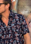 Our Capri Shirt Ink is your perfect travel companion, crafted from 100% viscose woven exclusively in Europe just for us. This shirt feels wonderfully cool and light, keeping you comfortable no matter wheur adventures take you. Its navy abstract print adds a splash of playful style, while the chest re yopocket and flat edge hem give it a casual yet polished look. Whether you're exploring new cities or dressing up for a special occasion, this shirt effortlessly blends comfort and flair, making it a standout piece in your travel and everyday wardrobe.