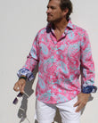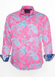 Expertly designed by Australian fashion icon David Smith, this Lani Sunset Shirt features unique pink paisley. Made from the finest Supima Cotton, this luxurious button-up shirt is perfect for adding a touch of flair to any outfit, whether you're dressing up for a special occasion or dressing down for a casual outing. With its long sleeves, this men's paisley shirt is sure to make a statement wherever you go.