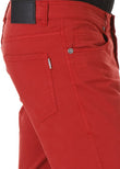 Garment dyed in a rich Cherry red with a super-soft peached finish, this pant combines individuality with easy wear. Classic jean details — 5 pockets, metal shanks, and a David Smith leather patch — make it a true signature piece.