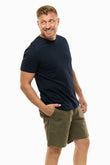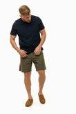 Our Wave Short in olive is your new go-to for laid-back style and comfort. Crafted from a soft cotton-linen mix with a hint of stretch, they feature an elastic drawstring waist for easy wear. With a 7.5" inseam, handy side pockets, and a buttoned back pocket, these shorts are perfect for kicking back after work or jetting off on holiday. Get ready to make these everyday favorites your ultimate chill companion!